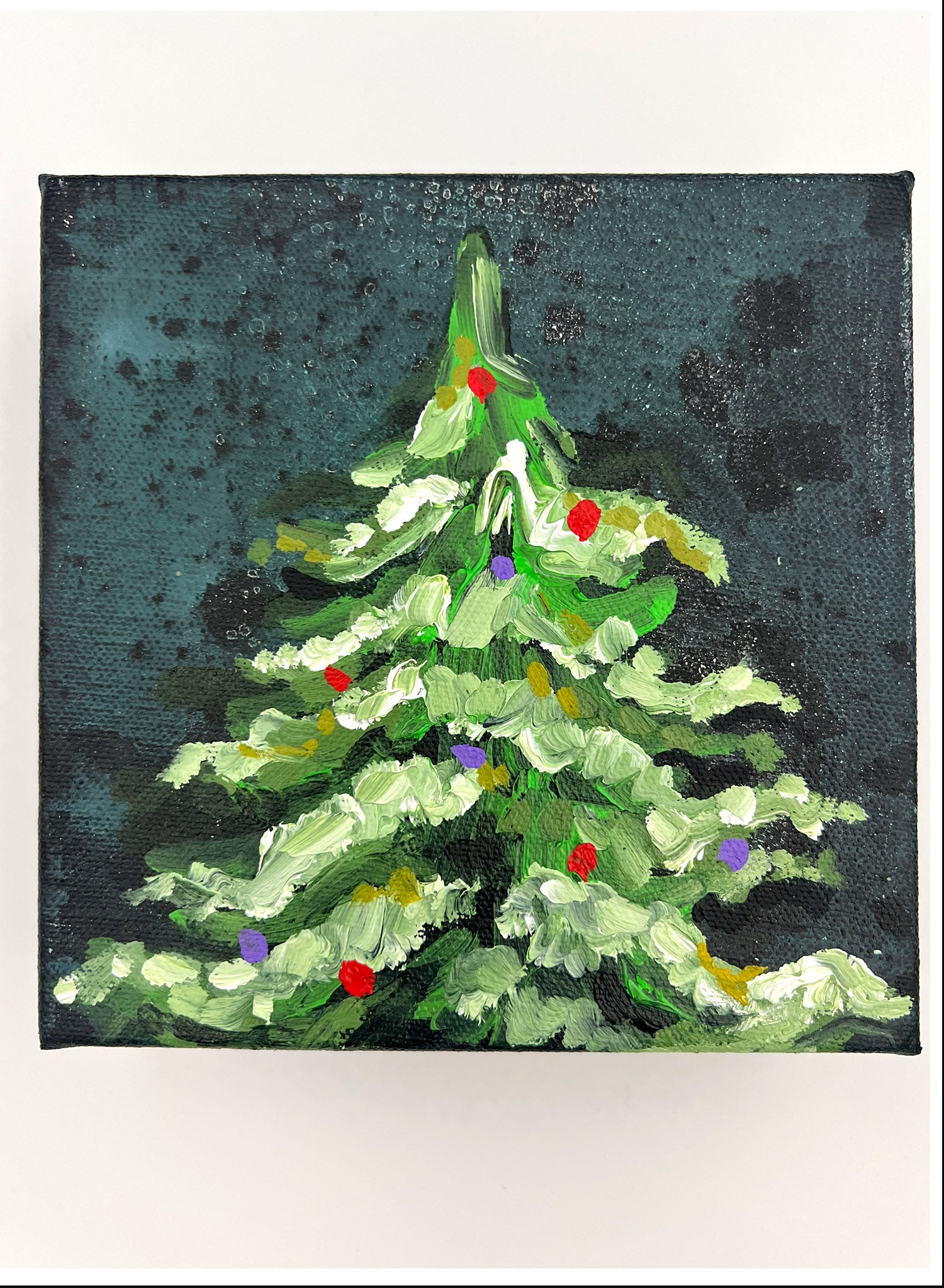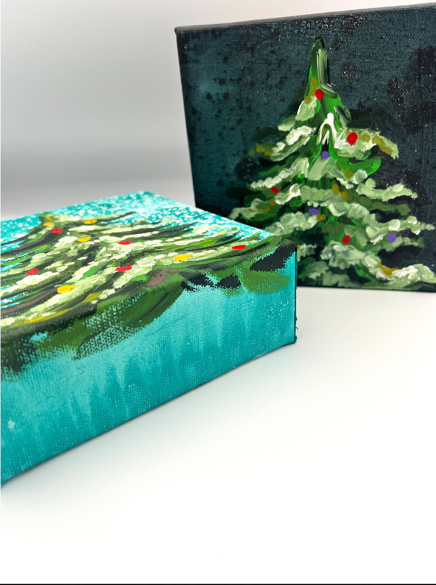 Original, one-of-a-kind painting of a Holiday tree. Acrylic paint all the way around this canvas sending jolly festive vibes!