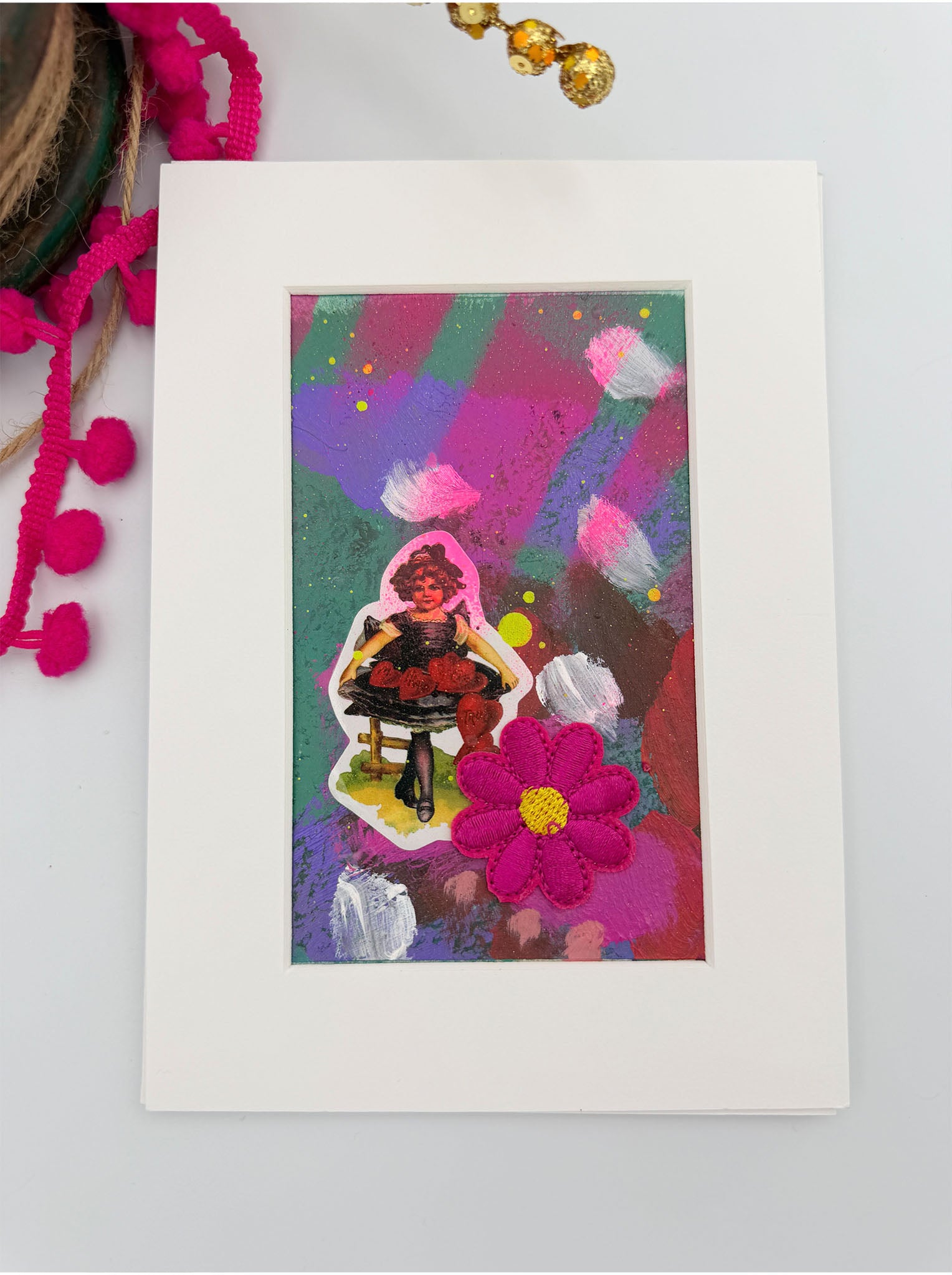 This one-of-a-kind handmade Valentine is full of mixed-media and sass! A variety of collage elements were used to layered creating a unique paper treat.