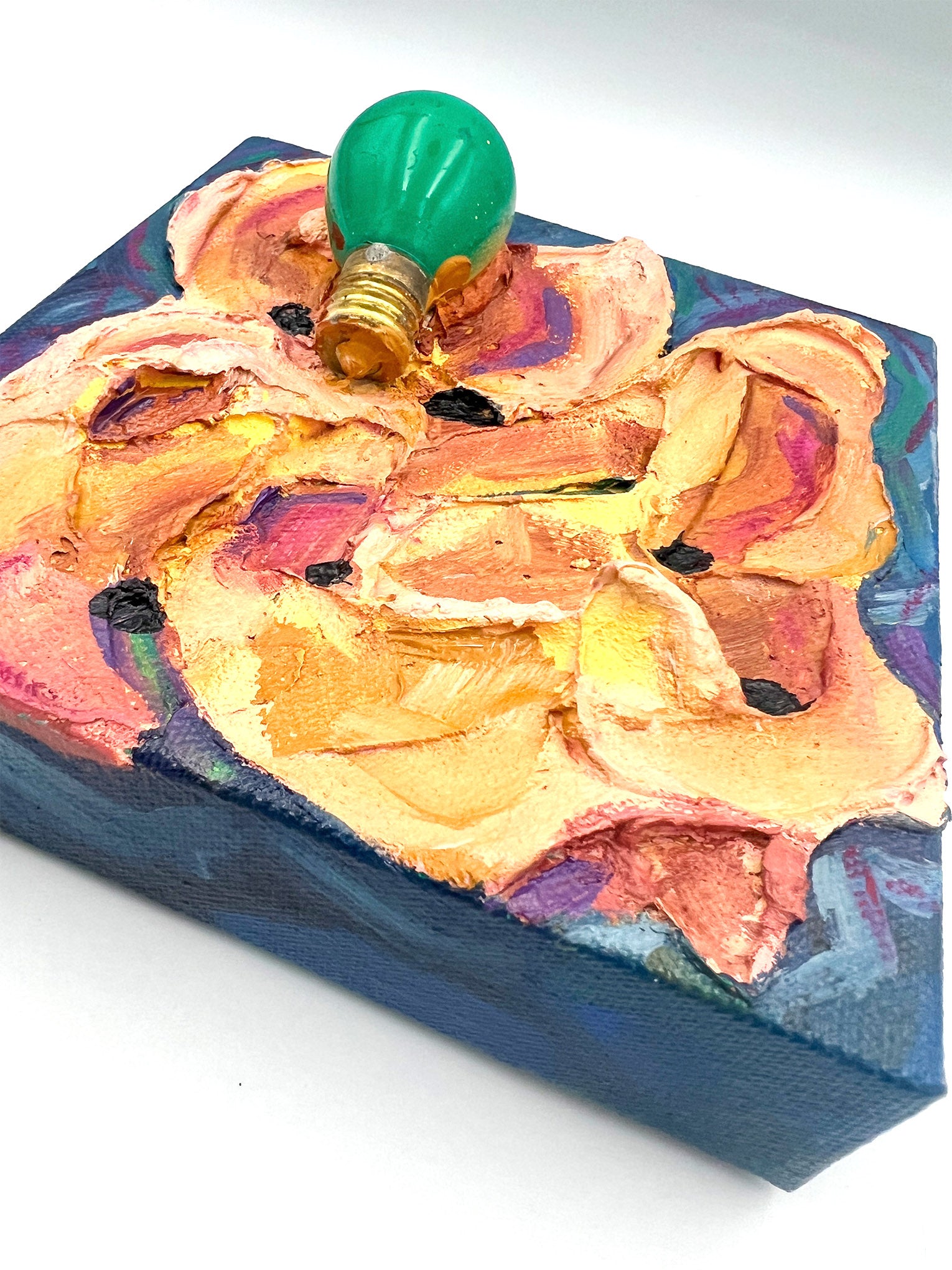 One-of-a-kind original, mixed media painting on canvas. A bright acrylic painting created super thick texture with a Country Club Plaza light bulb nestled in the piece! Creating everlasting Holiday memories.